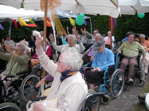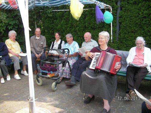 Der Nachmittag wurde musikalisch von Frau Schulz auf dem Akkordeon begleitet. Der Gesang der Bewohner war auf dem ganzen Gelände zu hören.