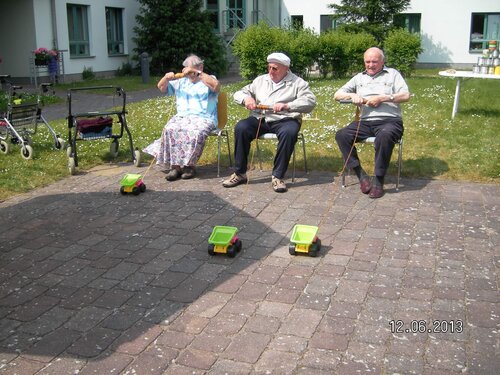 Gestern nun hieß es „Sport frei“ beim Sportfest. Bei herrlichem Sonnenschein trafen sich Bewohner und Mitarbeiter im Innenhof und wetteiferten miteinander beim „Autorennen“, „Büchsen werfen“, Kegeln und anderen Aktivitäten.