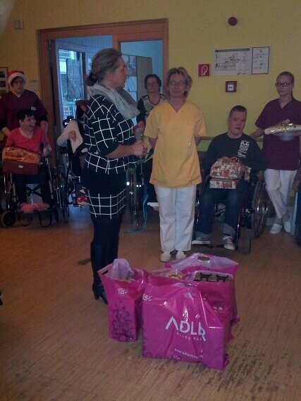 Unsere alljährliche Bewohnerweihnachtsfeier konnte wieder einen Höhepunkt aufweisen. In Zusammenarbeit mit der Adler Modemarkt AG in Greifswald und Neubrandenburg wurde den Bewohnern der Wohngruppe 1 und 2 wieder eine große Freude bereitet. In der Vorweihnachtszeit findet in den Adler Modemärkten in Greifswald und Neubrandenburg eine Spendenaktion statt, bei denen Gelder für Geschenke gesammelt werden. Von den gespendeten Einnahmen wird dann durch den Modemarkt Bekleidung bereitgestellt. Das Haus an der Trebel in Grimmen konnte hierbei im Vorfeld die Zusammenarbeit mit den Modemärkten erlangen. Die Konfektionsgrößen der einzelnen Bewohner/innen wurden übermittelt und die Kleidungsstücke dann vor Ort noch in Geschenkpapier eingepackt und somit gab es dann für jeden Bewohner/in ein Präsent.