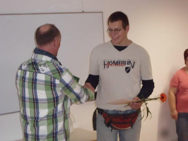 Sie alle erhielten als Beleg für die vergangene Berufsbildungszeit ein Zertifikat und die Urkunde von KOPERNIKUS. Sichtlich stolz empfingen sie die Gratulationen von der Fachbereichsleitung, den Fachkräften und Bildungsbegleitern und der Sozialpädagogin. Der Werkstattrat übermittelte Blumengrüße.