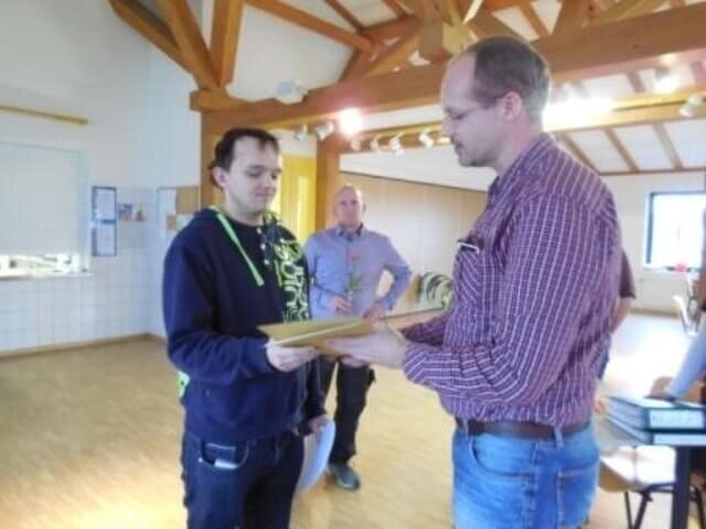 Herr Herbert Köppen absolvierte seine zweijährige Berufsbildungszeit in der Gärtnerei der Betriebsstätte Züssow. Er ist zu einem festen Bestandteil der Arbeitsgruppe geworden - seine Kollegen und auch die Fachkräfte haben ihn als fleißigen Teilnehmer kennen und schätzen gelernt. Seit Februar 2014 ist er nun als Mitarbeiter in der Gärtnerei beschäftigt. „Dann bekomm ich jetzt auch meinen Arbeitsvertrag!“ Mit diesen Worten nahm Herr Köppen diesen dann auch freudig von der Fachbereichsleitung entgegen.