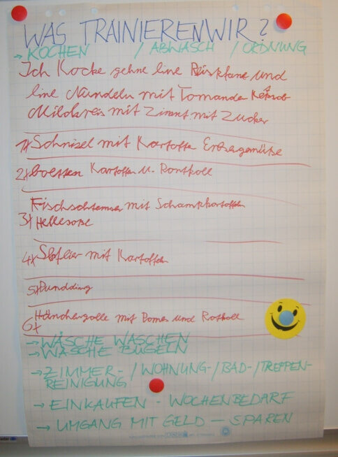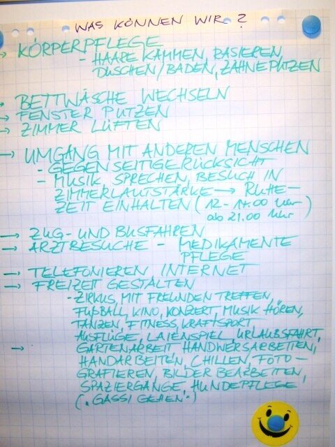 Zum größten Teil gestalten sie ihr Leben selbst – wo das noch nicht ganz klappt – bekommen sie Assistenzleistungen durch die Mitarbeiter der Einrichtung. Sicher, es gibt einen Wochenplan – in dem steht, was wann und wo zu erledigen ist – doch nicht immer sind sie damit einverstanden. Dann wird so lange diskutiert, bis alle Beteiligten mit der Planung einverstanden sind.