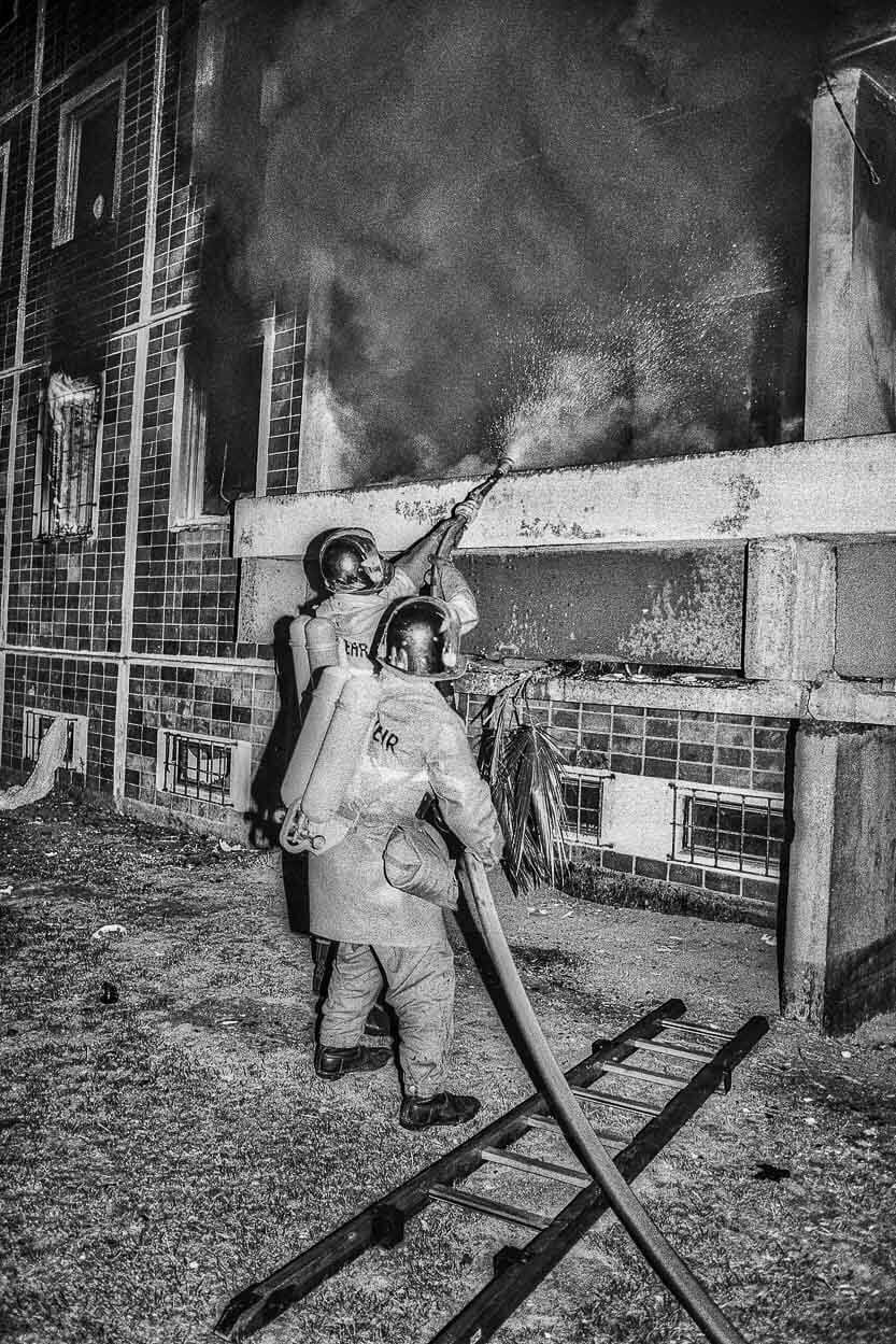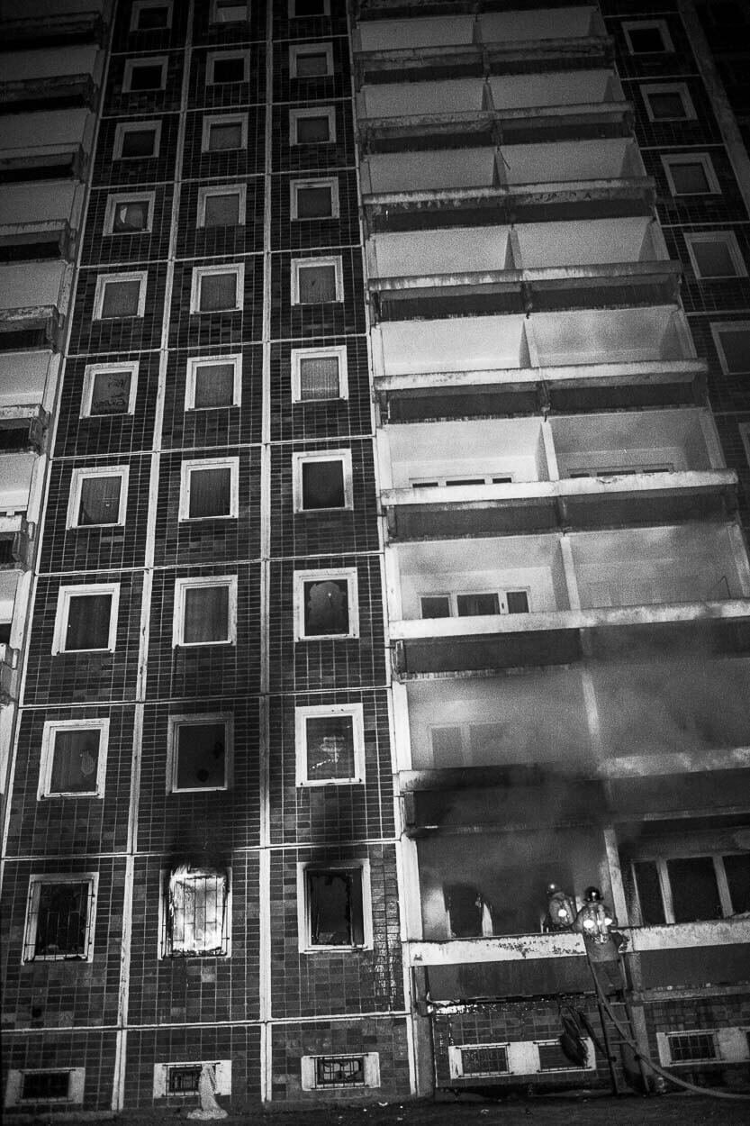(Fotos rechts mit freundlicher Genehmigung des Fotografen: "Feuerwehr" | "Ik bün Rostocker" | "Verbrannte Fassade")