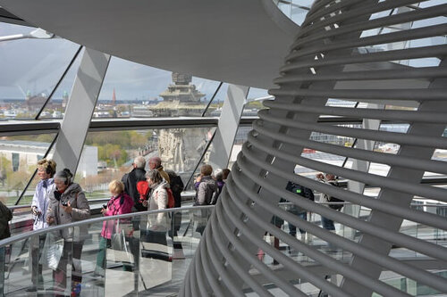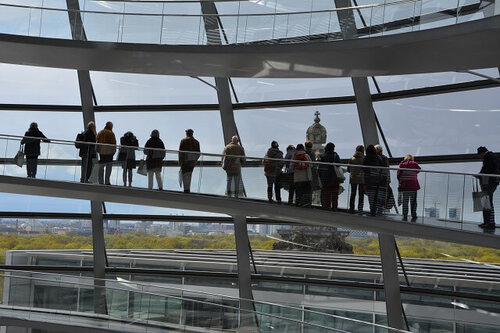 Nachdem sich die Kanzlerin im April 2015 vor Ort von dem vielfältigen Engagement der Aktiven im BÜRGERHAFEN überzeugte und begeistert zeigte, erfolgte nun eine Einladung ins Kanzleramt. Am Vormittag wurde die Zeit zunächst genutzt um das Reichstagsgebäude zu besichtigen. Zwischen einem Vortrag im Plenarsaal und der Besichtigung der berühmten Kuppel nahm sich die Büroleiterin von Frau Merkel noch Zeit, um Fragen zu beantworten und aus dem Alltag einer Kanzlerin und Abgeordneten zu berichten. Zu diesem Zeitpunkt war noch nicht sicher, ob diese es überhaupt schaffen würde, am Abend wieder rechtzeitig in Berlin zu sein. Syrien, Ukraine – in Hannover stand große Weltpolitik auf der Agenda.