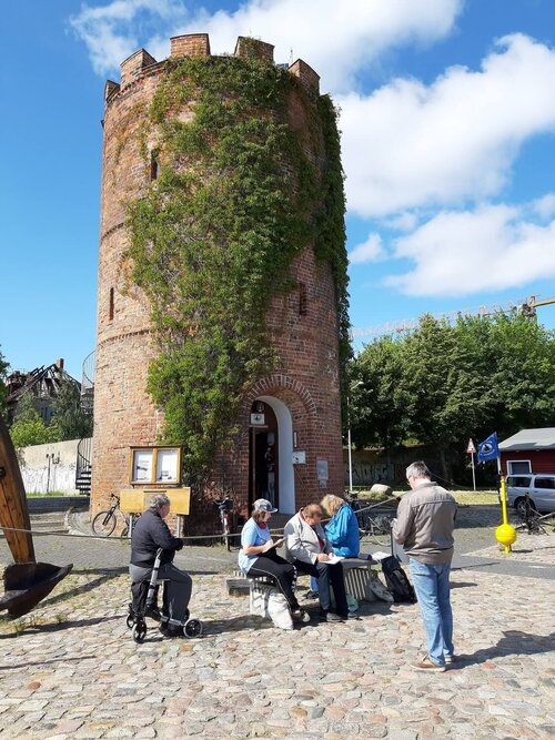 Ob als mittelalterliche Befestigungsanlage, Gefangenenturm, Sternwarte der Universität, öffentliche Bedürfnisanstalt oder ab den 1990er Jahren Büro des Hafenmeisters... Der Fangenturm hat in seiner Vergangenheit für allerlei Funktionen herhalten müssen. Aufgrund seiner Bedeutung für die europäische Route der Backsteingotik und der besonderen Ästhetik besuchte die Gruppe des Kunstkurses der Greifenwerkstatt den 13,50 Meter hohen Turm.