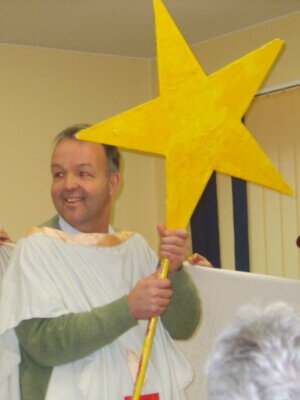 Auch in diesem Jahr wurde von der Laienspielgruppe zur Adventfeier ein Krippenspiel für Angehörige und Betreuer aufgeführt. Hier kann nicht die ganze Handlung mit Hirten, Königen und natürlich Maria und Josef mit ihrem Kind erzählt werden, wohl aber von dem Wirt , dem die Angelegenheit gar nicht passte. Er hatte sein Wirtshaus bis auf den letzten Platz belegt und freute sich über seinen guten Verdienst. Spät am Abend wurde er im Schlaf zuerst durch Maria und Josef gestört, denen er, wenn auch mürrisch, wenigstens noch den kleinen Stall zuwies.
