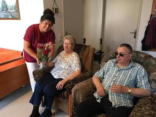 Am Morgen ließen es sich der Regionalleiter Herr Hünemörder und die Wohnbereichsverantwortliche Frau Petra Krause nicht nehmen, persönlich mit einen Blumenstrauß zu gratulieren.