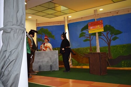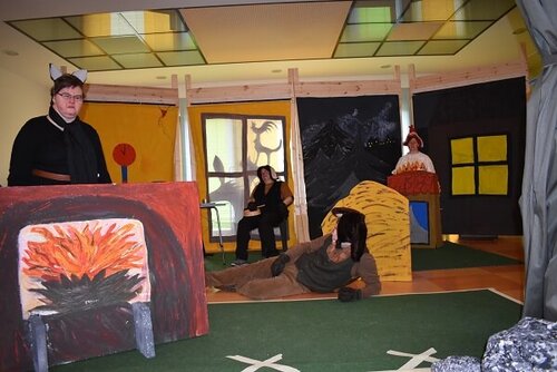 In monatelanger Projektarbeit gestalteten wir eifrig die Bühne, nähten Kostüme, probten Szenen und übten die Texte ein.