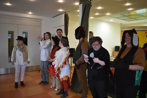 So erging es unseren zwölf Teilnehmern und Teilnehmerinnen des Martinstiftes bei ihrer prämieren Aufführung, einer musikalischen Neuinszenierung des bekannten Volksmärchen „ Die Bremer Stadtmusikanten“, am 01.03.2019, im Katharinenstift.