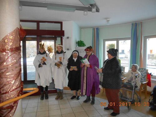 Auch in diesem Jahr wurde das Nikolaiheim in Gützkow von den Sternsingern der katholischen Kirchgemeinde Greifswald besucht. Diesem Ereignis wird im Hause schon seit vielen Jahren besondere Aufmerksamkeit entgegengebracht. Die Segnung des Hauses berührte besonders die Bewohnerrinnen und Bewohner, die mit der christlichen Mission der Kinder vertraut sind.