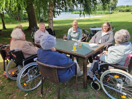 Am 16.06.2025 begann die Tagespflege Demmin die Woche mit einem Ausflug nach Verchen an den Kummerower See. Mit zwei Fahrzeugen starteten die Teilnehmenden nach dem Frühstück, gegen 10.00 Uhr, in Richtung Verchen. Der Himmel war zwar noch bewölkt, aber alle waren positiv gestimmt, dass das Wetter besser wird, wenn wir dort ankommen. So war es dann auch. Nach einem kurzen Schauer brach der Himmel auf und es wurde ein schöner Tag.