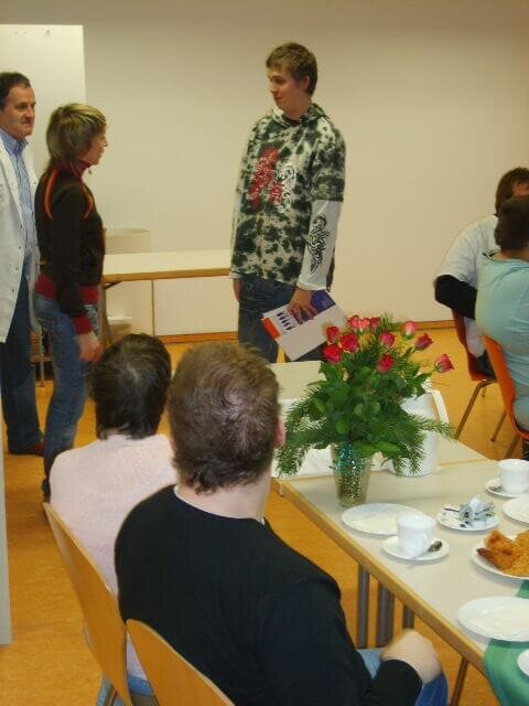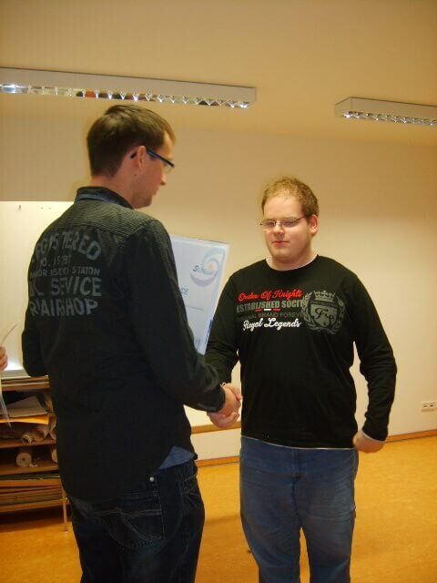 Doppelten Grund zur Freude gab es heute in der Wäscherei der Ostseelandwerkstatt, denn mit Erik Brandt und Daniel Wessler beendeten erfolgreich zwei Teilnehmer gleichzeitig den Berufsbildungsbereich. Ab Dezember können sie sich somit als „Mitarbeiter“ bezeichnen.
