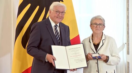 Am 01.10.2025 wurde Dr. Monika Meyer-Klette nun für ihr Engagement mit dem Verdienstorden der Bundesrepublik Deutschland von Bundespräsident Frank-Walter-Steinmeier ausgezeichnet. In der Laudation, die durch Susanne Daubner vorgetragen wurde, hieß es: