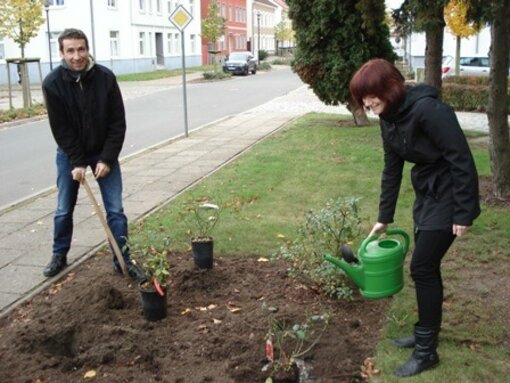 Nunmehr wurden am 06.11.2014 diese Rosen vor dem Haupteingang des Annastiftes gepflanzt.