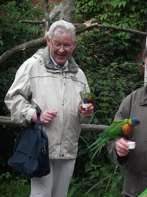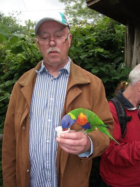 Vom Lori- Gehege waren wir besonders beeindruckt. Loris sind kleine bis mittelgroße, farbenprächtige Papageien, die sich hauptsächlich von Pollen und Nektar, aber auch von weichen Früchten ernähren. Die Papageien waren sehr zutraulich und ließen sich auf unserem Arm füttern, allerdings musste so manch einer auch erst seine Ängste vor den Vögeln überwinden.