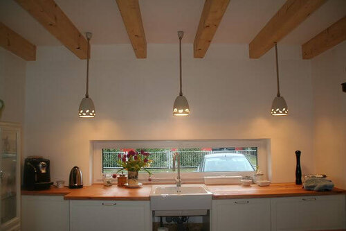 Die Idee und Umsetzung der Lampenschirme mit ausgeschnittenem Blumen- bzw. Blättermuster wurde durch die Mitarbeiter der Keramikwerkstatt realisiert.
