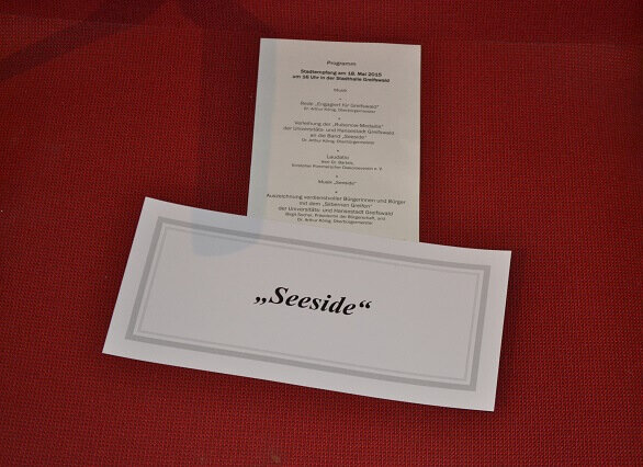 Vielfach wurde bereits über das große Ereignis der Verleihung der Rubenow-Medaille am 18. Mai 2015, an "Seeside", die Band des Pommerschen Diakonievereins, im Rahmen des diesjährigen Stadtempfangs der Universitäts- und Hansestadt Greifswald, berichtet (auch nachzulesen unter der Rubrik "Presse" auf unserer Homepage).