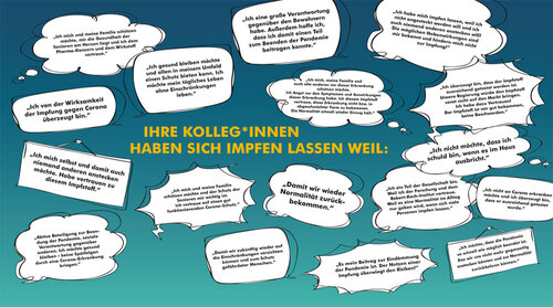 Einige der Mitarbeiter*innen die sich impfen ließen, gaben uns ein Feedback, warum sie sich für den Pieks entschieden haben. Die Gründe sind vielfältig. Der Grundtenor aller jedoch derselbe: die Gesundheit. Die eigene und die aller. Und wie stehen Sie dazu? Lassen Sie sich impfen?