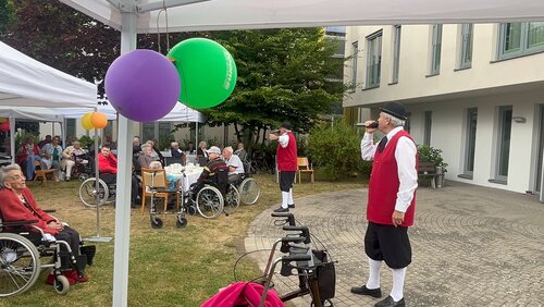Der Tag begann schwungvoll: Herr Wöller von der „Musikschule Fröhlich“ brachte mit seinem Akkordeon frischen Klang in den Vormittag. Für die Bewohner*innen des Pflegeheims und die Mieter*innen des Betreuten Wohnens in der Soldmannstraße erklangen beliebte Lieder, die zum Mitsingen und Träumen einluden: