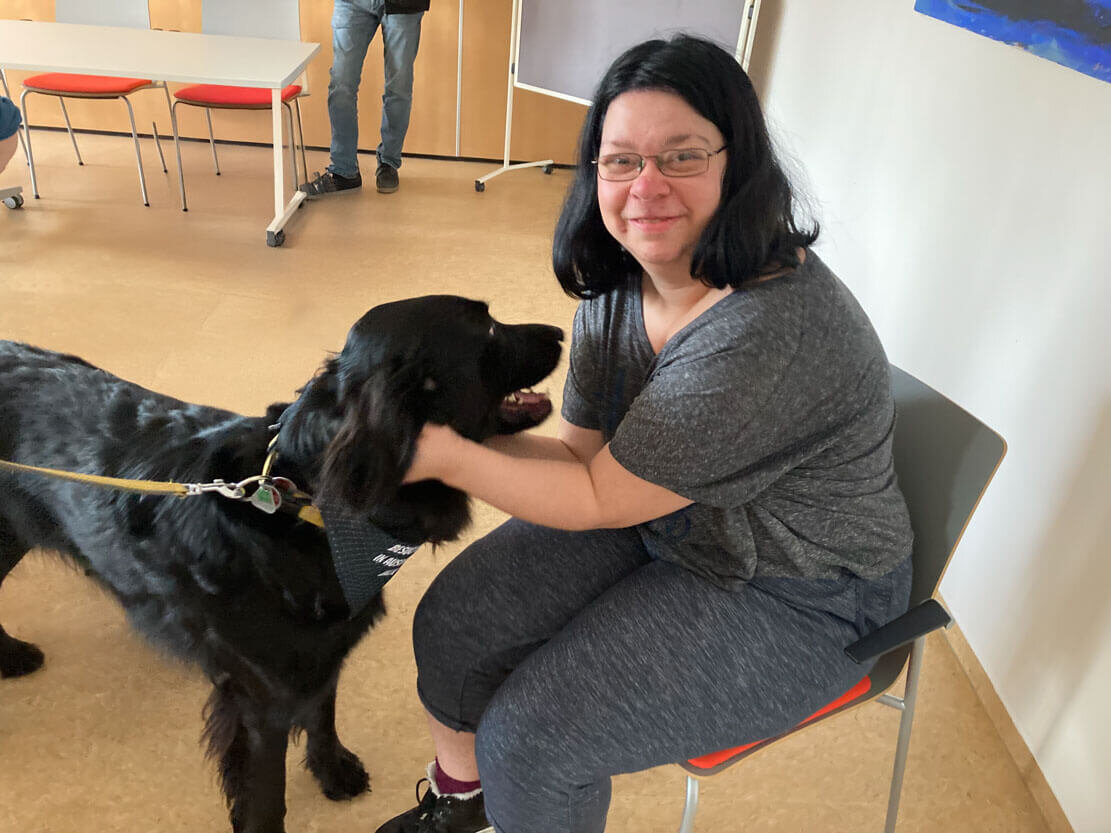 Begleithund Jack sorgt in der Greifenwerkstatt für strahlende Gesichter.