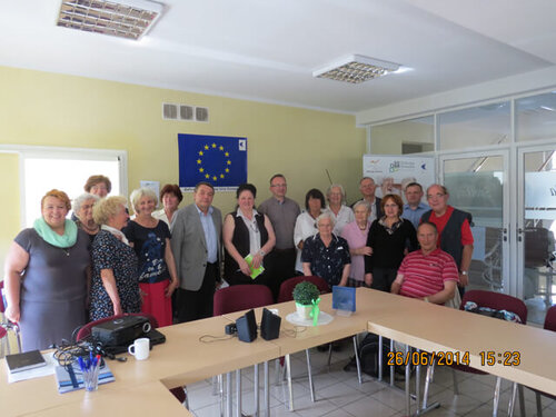 Eine Delegation des BÜRGERHAFENs gestaltete innerhalb eines EU-Projektes "Besser zusammen" erfolgreich zwei Bildungstage. (26.+27.06.14) Mit Vorträgen über ihre Tätigkeitsfelder kamen die Engagierten gut an: Ursula Hörhager berichtete über ihr Pilgerprojekt und hat sofort Interessenten gewonnen; Friedhelm Hein zeigte Fotos der Himbas und seines Lehmhausbauprojektes in Namibia und Fjodor Kuxenko schilderte anschaulich, wie er zum Engagement gekommen ist und seither Ausstellungen zwischen polnischen, schwedischen und deutschen Künstlern organisiert.