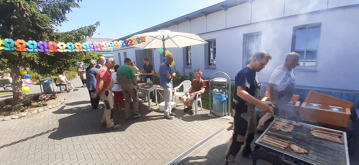 Dafür wurde der Innenhof von fleißigen Helfern dekoriert, das Grillgeschirr aufgebaut, der Salat geschnippelt, das Stangeneis kühl gestellt und die Musikbox angeschlossen. Somit war für das kulinarische und leibliche Wohlergehen gesorgt.