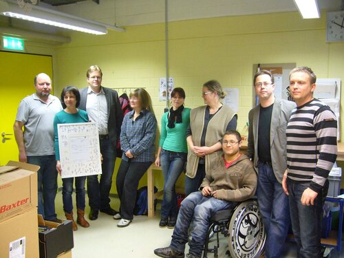 Im Kreis ihrer Kollegen und Mitarbeiter wurde Frau Habekost als verantwortliche Fachkraft die 1000. Rechnung, künstlerisch gerahmt durch das Atelier PIX, übergeben.