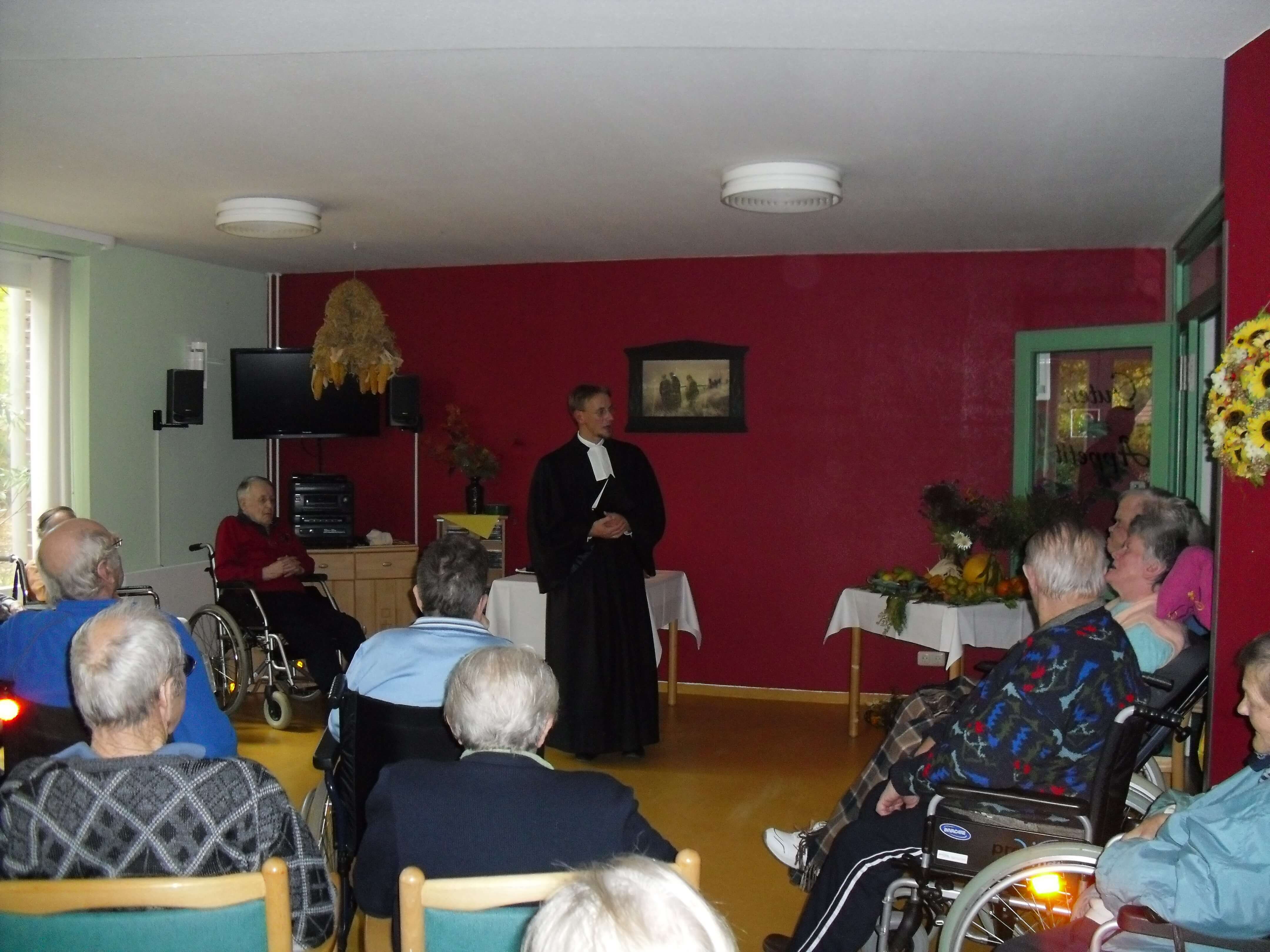 Alle Bewohner, die aus gesundheitlichen Gründen nicht am Erntedankgottesdienst teilnehmen konnten, besuchte der Pastor auf ihren Zimmern, um auch ihnen seinen Segen auszusprechen.