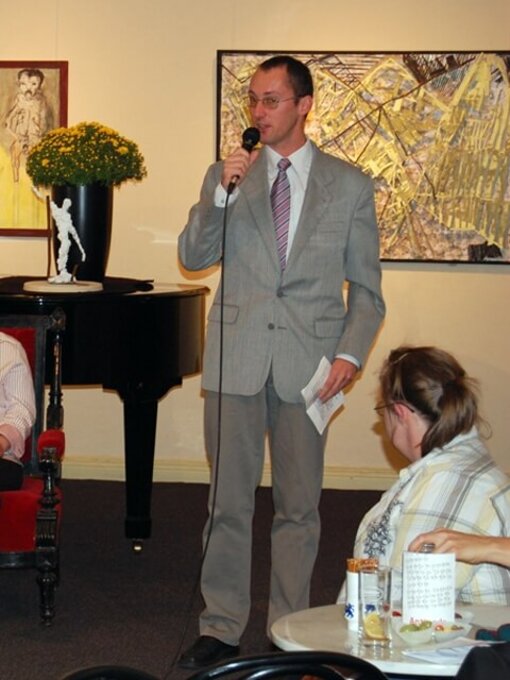 Ich bin Oliver Skrock, der Gruppensprecher des Ateliers der Greifenwerkstatt. Die Vorbereitungen für die Ausstellung begannen schon einige Monate vorher. Wir suchten die Bilder aus und brachten sie dann in die Theatergalerie. Dort bauten wir sie dann gemeinsam mit einer Mitarbeiterin des Theaters auf. Nachdem der Theaterdirektor etwas zum Stück Antigone erzählte übergab er das Wort an Ulrike Freiberg, der Leiterin des Ateliers, die etwas zum PIX selbst sagte. Sie sagte etwas zu den Bildern und stellte mich kurz vor. Danach bat sie mich etwas zu den einzelnen Bildern zu sagen. Ich erzählte etwas zu dem Bild „Der Kinderspielplatz“, einer Gemeinschaftsarbeit des Ateliers PIX und zum „Engel“ von Christian Kronfoth. Ich war natürlich sehr aufgeregt, als ich dort vor so vielen Leuten sprechen musste. Ich hatte so etwas noch nie vorher gemacht. Auf der Arbeit bereitete ich einige Stichpunkte vor und nutzte diese dann auch bei meiner Rede.