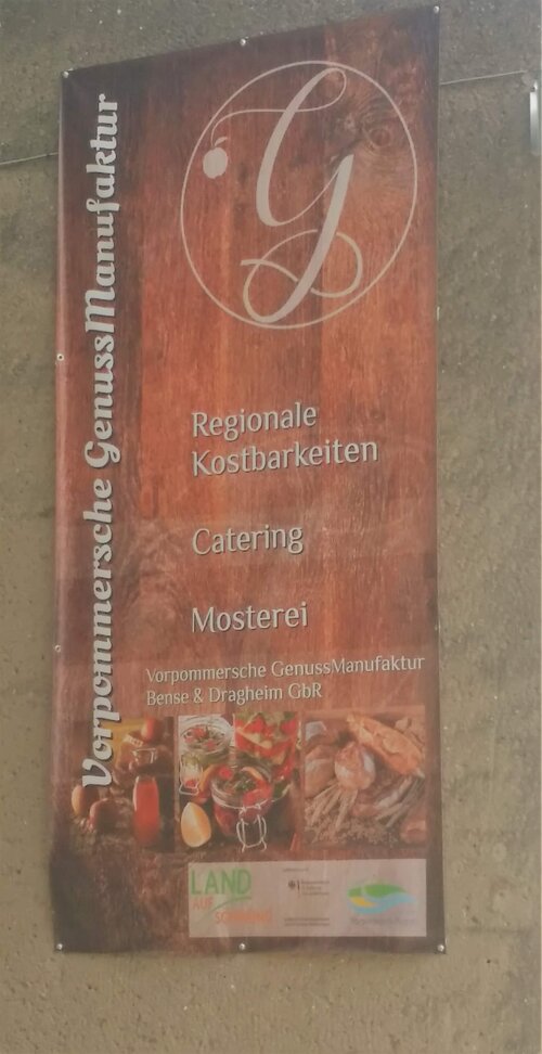 Die beiden Inhaber Christoph Dragheim und Daniel Bense renovierten dafür in den vergangenen sechs Monaten das ehemalige Wirtschaftsgebäude des früheren Haus Kastanienhain. Hier werden jetzt regionale Bioprodukte verkauft und weiterverarbeitet. Die eigene Backstube produziert hochwertige Back- und Brotwaren und die angeschlossene biozertifizierte Mosterei bietet die Möglichkeit, Säfte aus den selbst geernteten Früchten herzustellen. Daneben ist es möglich, Feierlichkeiten durch die Vorpommersche Genussmanufaktur kulinarisch gestalten zu lassen.