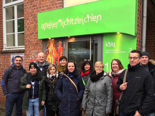 Am 20. Januar 2017 machten wir uns deshalb auf nach Hamburg, ins Kompetenzzentrum für Bildung und Qualifizierung von alsterarbeit. Auch hier ist die Berufliche Bildung nach dualem System der allgemeinen Berufsausbildung organisiert. Fachpraxis wird direkt am Arbeitsplatz und im Betrieb unterwiesen, die vertiefende Theorievermittlung erfolgt in Hamburg direkt in der Berufsschule oder in Modulen im Kompetenzzentrum Bildung und Qualifizierung. Die Modulorientierung, die eine noch individuellere Berufliche Bildung für den Teilnehmer im Berufsbildungsbereich ermöglicht, ist eine wichtige neue Perspektive, die wir selbst vertiefen wollen. Der Fachaustausch mit den Hamburger Kollegen hat uns darin bestärkt.