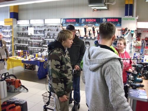Wir nutzten dabei die Gelegenheit, um uns an den neusten Modellen von Kleinmaschinen zur Holzbearbeitung auszuprobieren. Auch im Umgang mit den neu auf den Markt gekommenen Handwerkszeugen haben wir uns erprobt sowie einiges an moderner Arbeitsschutzbekleidung bewundert. In dieser Zeit haben wir viel Neues erfahren und teilweise die neuesten Werkzeuge in ihrer Handhabung testen können. Bei fachmännischer Anleitung durch das Personal der Verkaufseinrichtung konnten wir auch die Maschinen an den Werkstoffen Holz und Stein ausprobieren. Tom, Conny, Karsten, Markus, Mirko und David waren erstaunt über die Vielfalt der angebotenen Werkzeuge. Das Interesse war groß und Fragen konnten kompetent beantwortet werden.