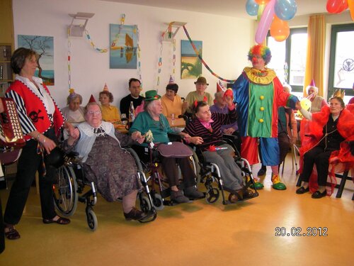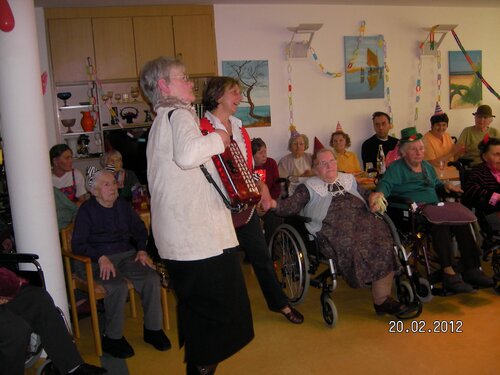 Zu den Klängen des Akkordeons, gespielt von Frau Schulz, und Musik aus der Konserve, wurde geschunkelt und getanzt. Einige unserer Rollstuhlfahrer wagten ein Tänzchen, auch wenn es auf der Tanzfläche sehr eng zu ging.