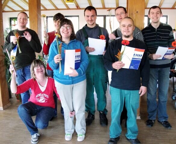 Nicht nur sie startet ab dem 01.12.2011 in einen neuen beruflichen Lebensabschnitt. Zusammen freuen sich Frau Rucht, Frau Putzar, Herr Biederstädt, Herr Mühlenbernd, Herr Schädlich, Herr Dombrowski und Herr Liebert darauf, ihre Fähigkeiten und Fertigkeiten in die bestehenden Arbeitsprozesse der Werkstätten einzubringen und eine weitere Verstärkung für ihre Arbeitsgruppen zu sein. Im Beisammensein aller Teilnehmer und Mitarbeiter der jeweiligen Arbeitsgruppen sowie den Fachkräften für Arbeits- und Berufsförderung, den Fachbereichsleitern und Sozialpädagogen wurde auf die berufliche Bildung und die gemachten Fortschritte zurückgeblickt; dabei immer im Blick: den neuen Lebensabschnitt.