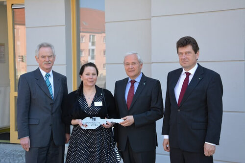 „Ich habe den schönsten Arbeitsplatz in ganz Demmin“ freut sich Veronika Laudahn. Die Begeisterung über die neuen Räumlichkeiten am Markt in Demmin ist deutlich zu spüren. Besonders die Helligkeit und das Licht, die dem Namen „Sonnenseite“ alle Ehre machen, werden begeistert aufgenommen. Nicht nur von Teamleiterin Veronika Laudahn, sondern auch von den rund 70 Gästen, die am 2. Mai zur festlichen Eröffnung der Einrichtung kamen. Bei strahlendem Sonnenschein versammelte man sich vor dem Eingang des neuen Gebäudes. Nach der symbolischen Schlüsselübergabe durch Sabine Milenz vom Architekturbüro FMR konnten die Räume schließlich betreten werden.