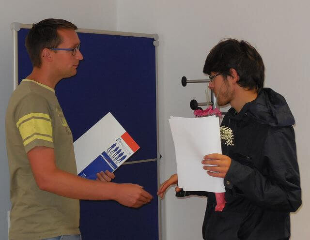 Aufgeregt nahm Herr Neumann in der Feierstunde den Werkstattvertrag sowie die Urkunde und das Zertifikat von KOPERNIKUS entgegen.