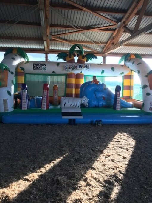 Am Mittwoch besuchten uns 4 Bewohner aus dem Haus mit deren Betreuern. Stolz wurde ihnen alles gezeigt, was wir schon erkundet hatten. Im Reitstall wurde allen der Umgang mit Lamas erklärt. Einige probierten selbst aus, die Lamas am Halfter zu führen. Auch die Kamele wurden gestreichelt. Wem das zu langweilig war, der konnte sich auf der Hüpfburg austoben. Am Nachmittag besichtigten wir zwischen zwei Regenschauern die Slavenburg. Ein Bewohner probierte aus, ob er in so einem alten Bett gut liegen kann und entschied sich dann doch für sein Hochbett. Eine andere Bewohnerin musste lange überlegen, welchen Küchengegenstand sie in der Hand hielt. Es war ein Quirl aus Holz. Heutige Küchen sind da bequemer ausgestattet. Ein Blick in das Leben der Slaven vor 1000 Jahren begeisterte alle. Abends beim Grillen konnten wir uns darüber noch austauschen.
