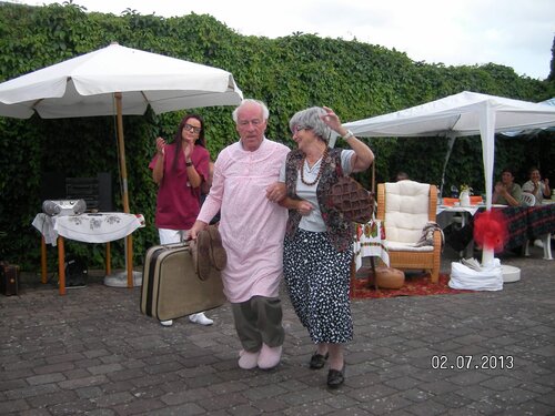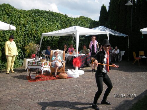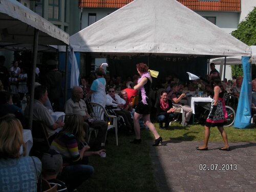 Das 18. Sommerfest des Pflegeheim Gertraudenstiftes in Demmin, startete bei schönstem Sonnenschein. Nach einer Andacht durch Pastor Bartels gab es Kaffee und leckeren Kuchen. Im Anschluss brachten die Kinder des evangelischen Kindergartens ihr Programm dar. Zu Besuch aus den 20 -er Jahren waren Marlene Dietrich, sie erfreute mit dem Lied „Ich bin von Kopf bis Fuß auf Liebe eingestellt“, Schmidtchen Schleicher, der mit „ seinen langen Beinen“ allen Frauen den Kopf verdrehte und Liane Haid mit dem Lied „ Adieu mein kleiner Gardeoffizier“. Die Tanzgruppe Stilbruch Dancing Girls aus Wotenick zeigte uns verschiedene Tänze. Dann ging es weiter mit dem Rock´n Roll. Die Zeit verging wie im Fluge. Oma Herta wollte in den Wochenendurlaub fahren. Schwester Maria konnte mit unserer Unterstützung den Koffer für die Reise packen. Im Reisegepäck befand sich unter anderem eine außergewöhnlich nette Herrenbegleitung.
