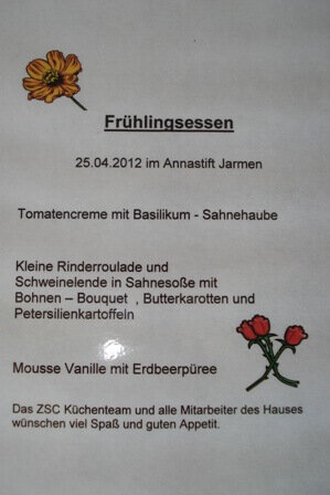 Am 25.04.2012 luden die Mitarbeiter der ZSC-Küche aus Gützkow die Bewohner und die Mitarbeiter des Annastiftes zu einem ganz besonderen Mittagessen ein.