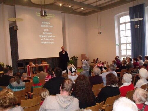 Ein voller Saal im BIOTagungshotel Wichernhaus zum Advents - Krippenspiel der Kirchgemeinde Züssow.