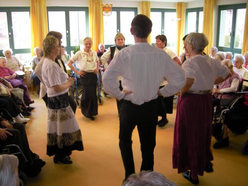 Nachdem die Bewohner und Mitarbeiter am liebsten mitgetanzt hätten, kamen die acht Sänger in unseren Kreis und sangen wunderschöne Volkslieder, die zum mitschunkeln und mitsingen einluden.