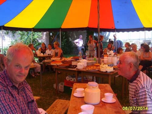 Anschließend gab es unter einem bunten Zelt im Gemeindegarten Kaffee, Kuchen und kühlende Getränke – begleitet von einem Musikprogramm.