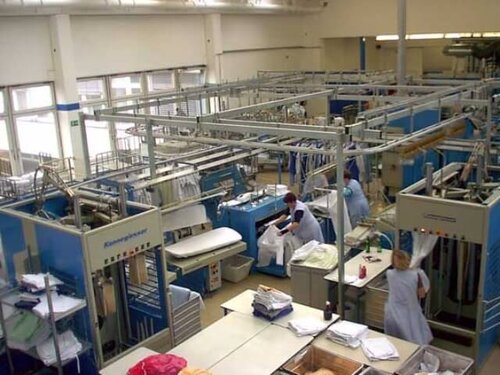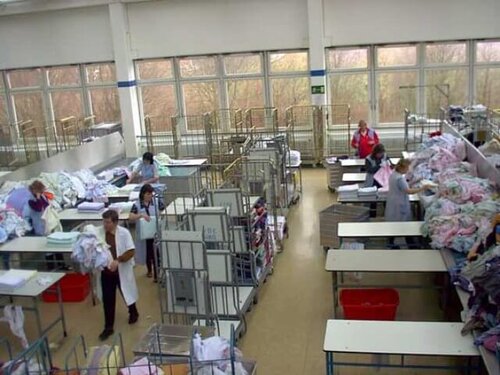 Am 26.02.2009 sind wir, Frau Bresemann, Frau Gaulke, Frau Vilbrandt und Frau Bruger, früh um 03:30 Uhr los in Richtung Hildesheim zur Gemeinschaftswäscherei. Die Hinfahrt verlief, mit einer Pause, gut und reibungslos, dank einer sicheren Fahrerin (Fr. Vilbrandt). Als wir ankamen war noch etwas Zeit um sich umzuschauen und das Gebäude von außen zu betrachten. Danach gingen wir hinein und wurden auf ein Display aufmerksam. Dort stand: „Willkommen Herr Gießler und seine Gäste“. Wir fanden die Idee ganz toll. Nun standen wir da und warteten, ob jemand kommt und uns den Betrieb zeigt. Da nach ein paar Minuten noch keiner kam, haben wir uns ins obere Geschoss begeben. Dort standen wir auch einige Zeit, bis endlich ein Kollege kam und fragte, ob wir die Gäste wären. Nach unserem „Ja“ durften wir in einem Schulungsraum, der mit Kaffee und Gebäck eingedeckt war. Wir bedienten uns und es dauerte nicht lange, da kam Herr Liegl (Geschäftsführer) und begrüßte uns sehr freundlich. Er fragte, ob er erst was erzählen soll oder wir? Wir waren uns einig, dass Herr Liegl anfangen sollte. Er erzählte uns viel über den Betrieb und wie der Tag anschließend ablaufen soll. Der Betrieb wurde vor über 30 Jahren gegründet. Gesellschafter ist die Diakonie „Himmelsthür“. Es ist eine Gemeinschaftswäscherei, wo 280 Mitarbeiter arbeiten. Davon sind 120 „behinderte“ Mitarbeiter, die auf den ersten Arbeitsmarkt keine Arbeit finden und so auch keine Förderung brauchen. Sie werden genauso bezahlt wie die nicht behinderten Mitarbeiter. Eine Gruppe von Mitarbeitern (10-12) wurde aus einer WfbM „eingekauft“. Meine Fragen dazu, z.b. Förderung, Arbeitszeit, berufliche Bildung konnte Herr Liegl nicht so beantworten, weil diese Gruppe ihren eigenen Betreuer hat und alles über die Werkstatt läuft. Die Besichtigung der Gemeinschaftswäscherei war sehr beeindruckend. Die großen Hallen, die vielen Menschen und Maschinen sowie die Unmengen an Bügeln, die oben an der Decke der automatischen Sortieranlage, für Bewohnerwäsche gedacht, entlang laufen - einfach erstaunlich. Diese Anlage wurde ungefähr vor drei Jahren eingerichtet und ist bisher die einzige in Deutschland. Sie sortiert alle persönlichen Wäscheteile von Bewohnern, wie Unterwäsche, über Socken und Oberbekleidung bis hin zu persönlich genutzter Bettwäsche nach Kunden, Wohngruppen und einer vorgegebenen Artikelreihenfolge. Die Anlage für Berufsbekleidung besitzt eine Speicherkapazität von 5.000 Berufskleidungsteilen und eine Sortierleistung von über 1.000 Teilen pro Stunde. Die automatische Sortieranlage besteht aus drei Bereichen: