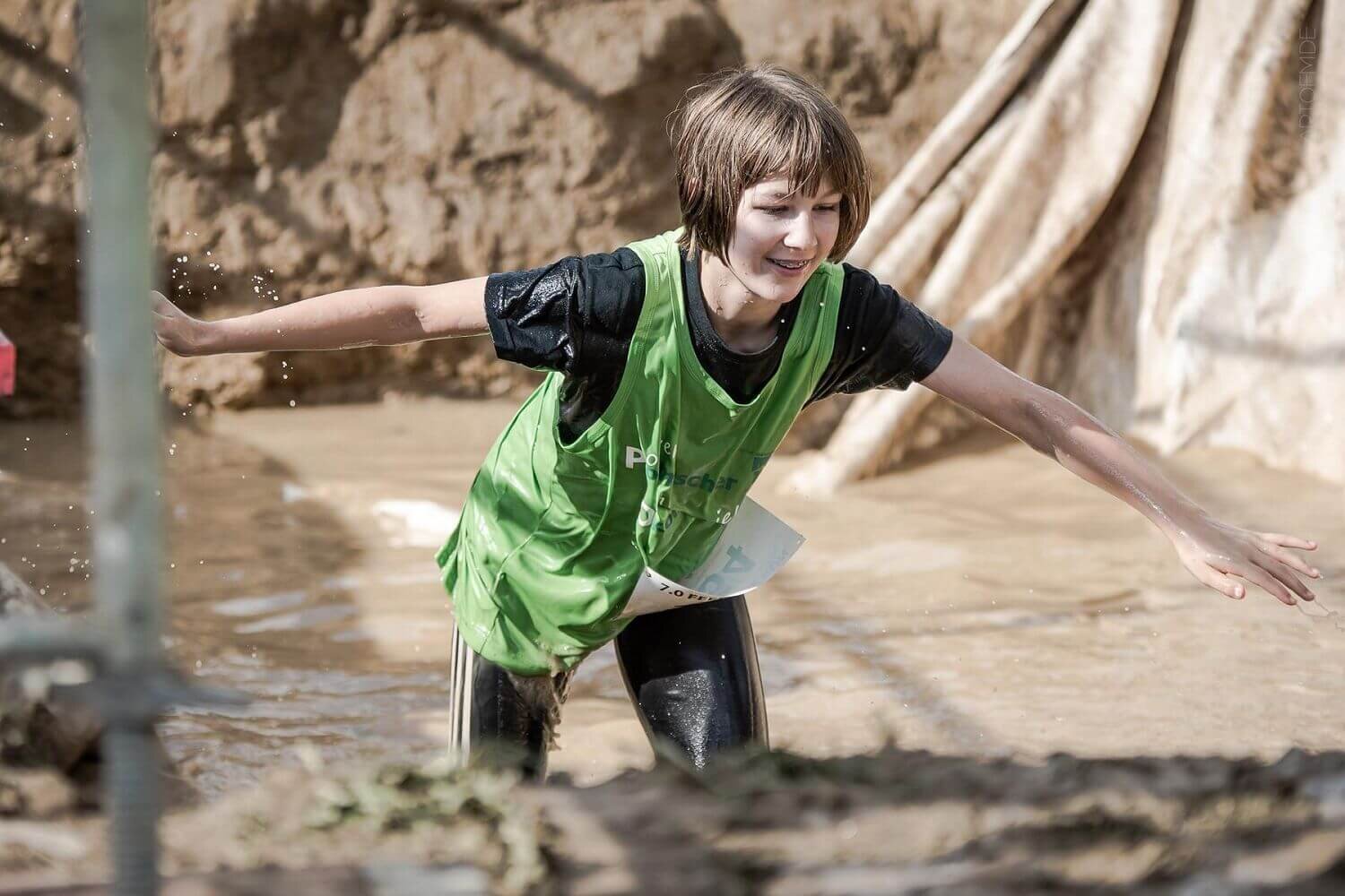 Es galt drei Runden á 2,9 km zurückzulegen und dabei jeweils 54 Hindernisse zu überwinden. Uns erwarteten Schlamm, Wasserläufe, Kriechhindernisse, Holzwände, Anstiege und Abstiege, Bierfässer, die zu tragen waren, und zu guter Letzt das HIGHLIGHT, ein Kriechhindernis mit elektrischen Weidezaundrähten „geschmückt“.