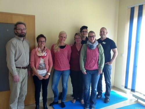 Am Nachmittag vermittelte Frau Neumann Kenntnisse zu Entspannungstechniken und leitete die Mitarbeitenden bei den einzelnen Übungen dazu an.