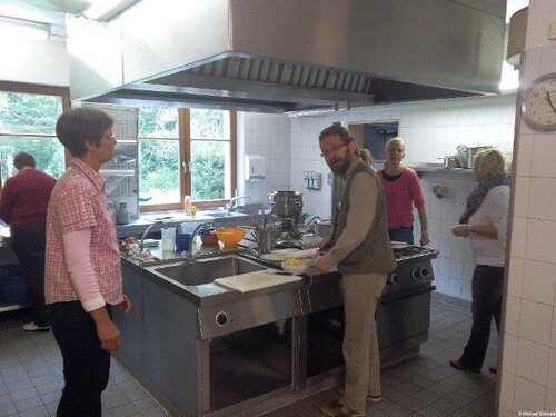 Für den Erhalt der körperlichen Kräfte spielt auch die Ernährung eine wichtige Rolle. Wie diese gesund gestaltet werden kann, vermittelte Frau Zornig (Grone Bildungszentrum) mit ihrem Vortrag und der praktischen Umsetzung beim gemeinsamen Vorbereiten und Herstellen eines Mittagsmenüs.