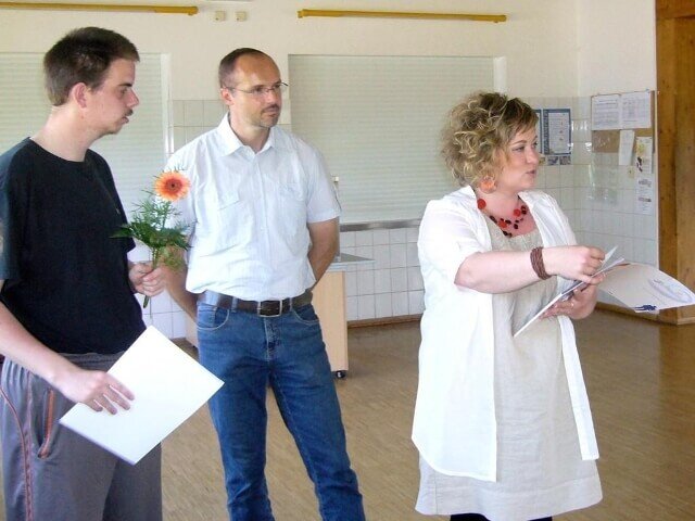 Vom 01.06.2009 bis 31.05.2011 absolvierten Herr Mau, Herr Bauer und Herr Langschwager ihre berufliche Bildung und feierten den erfolgreichen Abschluss zusammen mit Vertretern aus den jeweiligen Arbeitsbereichen. Am 1. Juni 2011 nehmen alle drei ihre Arbeit in der Greifenwerkstatt auf.