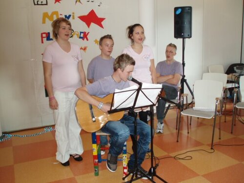 Während der Grill so richtig heiß lief und Bratwürste und Bouletten allmählich ihre Farbe wechselten, luden Betreute der Therapeutischen Wohngruppe zur ,,Mini- Playback- Show'' ein. Vor zahlreichem Publikum wurde die Musik bekannter Stars gesungen und mit entsprechender Tanzeinlage untermalt.
