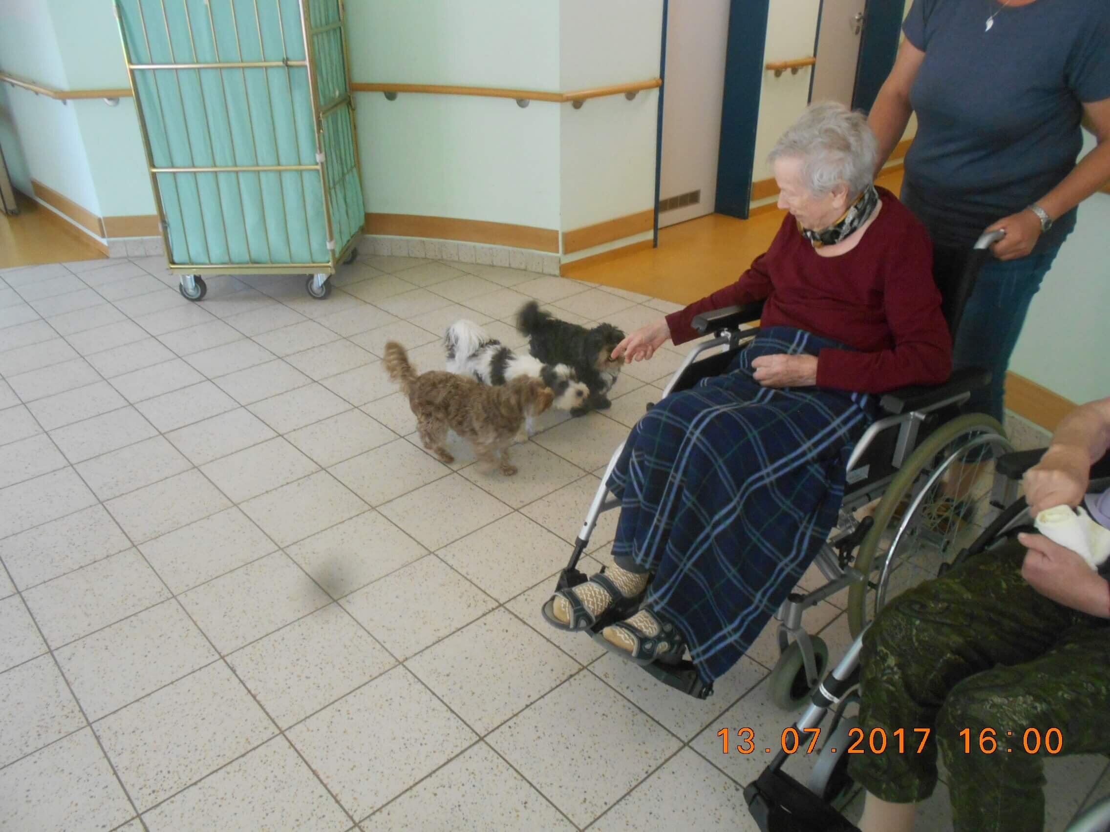 Ein besonderes Highlight ist in jedem Monat so auch in diesem Sommer der Besuch einer Hundestaffel die manche Bewohnerin und manchen Bewohner ihrem Gefühl für einen liebevollen Umgang mit den anhängigen Vierbeinern einen ausgedehnten Raum lässt.