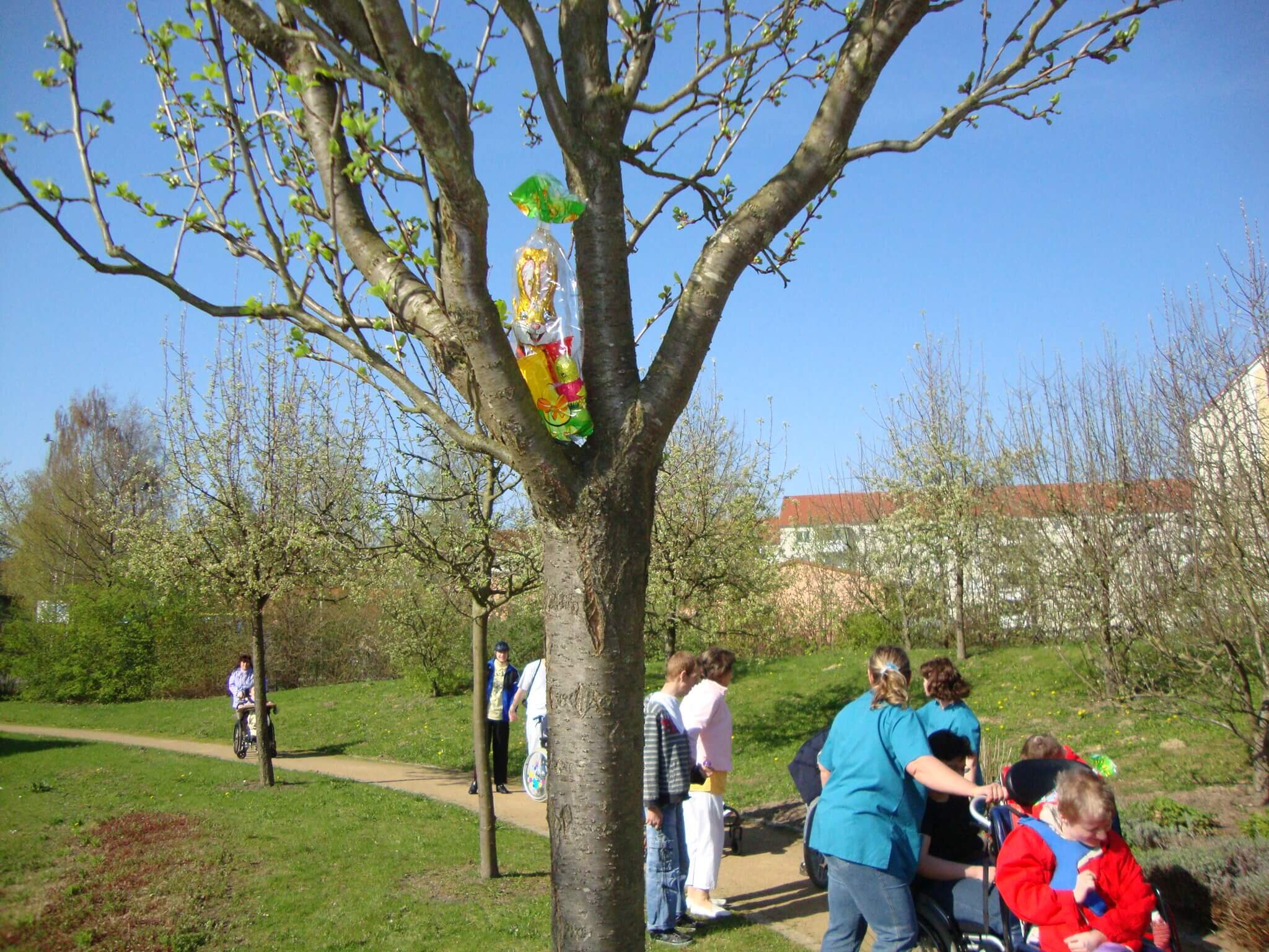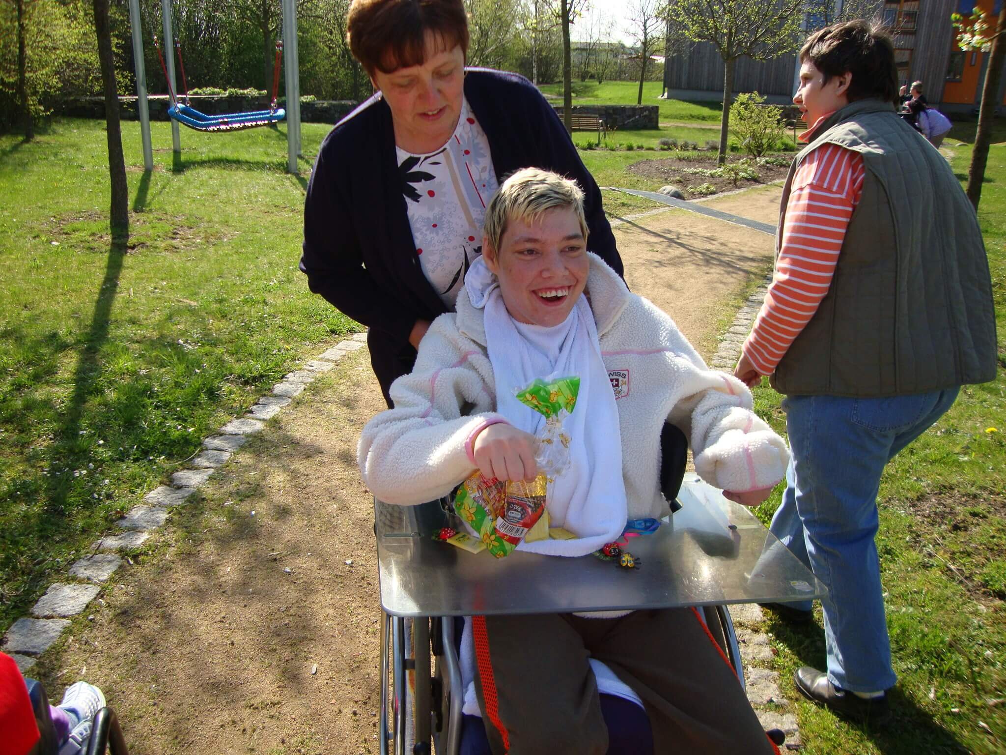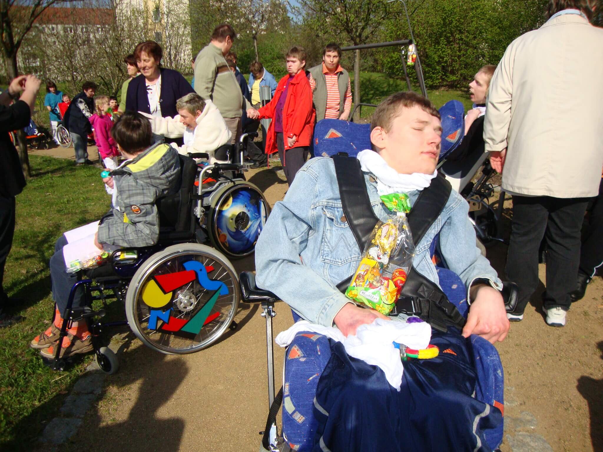 Bei dem sonnigen Frühlingswetter sammelten die Bewohner mit den Betreuern, Eltern und Therapeuten auch alles fleißig von der Wiese.